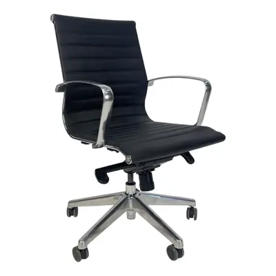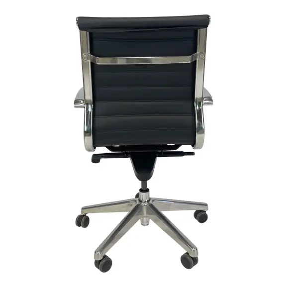 En snygg stol för ditt mötesrum. Fotkrysset och armstöden är av återvunnen, polerad aluminium. Klädseln i hållbart och lättskött konstläder. Höjden reglerar du med gaspatronen. Gunga med reglerbart motstånd.