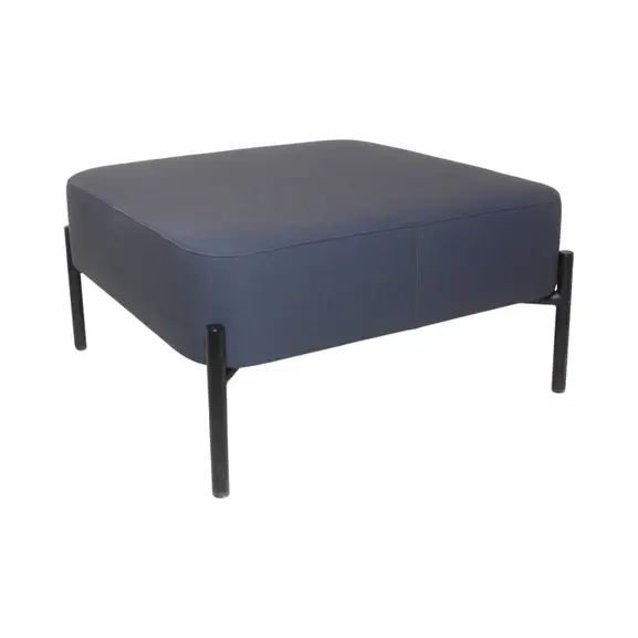 TWEET från Holmris B8. Tweet är en sittmöbelkollektion bestående av sittpall, fåtölj och soffa. Sittpallen är helklädd i ett mörkblått tyg och har ett svart underrede. Sitthöjd: 42cm.