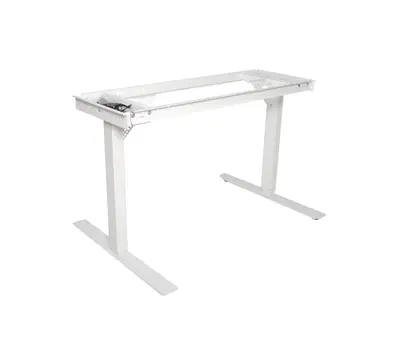 Ett stilrent höj/sänkbart EL-skrivbord från Form2 i vit färg. Stativet passar utmärkt till bordsskiva 120×80. OBS! Bordsskiva köpes separat. Justerbar höjd: 69cm-119cm.