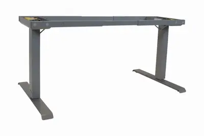Snyggt höj/sänkbart EL-skrivbord från Holmbergsbordet i grå färg med fyrkantiga ben. Bordsskivor ifrån 130cm passar till stativet. OBS! Bordskiva köpes separat. Justerbar höjd: 63cm-130cm.