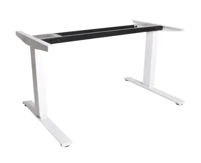 Tvåbensstativ med extra hög slaglängd med rektangulär design i vitt. Avsaknaden av mellanstag ger gott om utrymme för användarens ben, utan att förlora stabiliteten. Eftersom stativets balkar är flexibla passar skrivbordet bordsskivor mellan 120-200cm. Justerbar höjd: 60-126cm. OBS! Bordsskiva köpes separat.