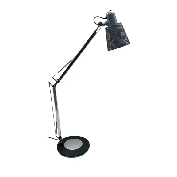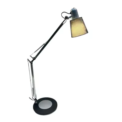 CASTING-lampan är utrustad med en dubbelt artikulerad arm och pivotanta kompenseringsfjädrar på basen för att rikta ljuset dit du vill ha det. Denna skrivbordslampa har en viktad bas för perfekt stabilitet och en justerbar och tippbar lampskärm. Av/på-knappen är placerad på sockeln.
