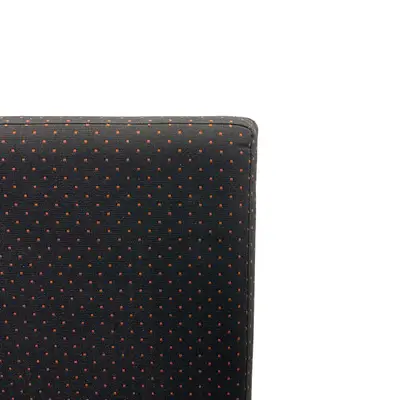 Avec kan med sina fällbara gavlar enkelt förvandlas till dagbädd. Båda gavlarna är fällbara och kan låsas i fyra lägen. Avec är utrymmesbesparande och praktisk med löstagbar sittdyna. Klädd i svart tyg med orangea prickar. Sitthöjd 45cm.