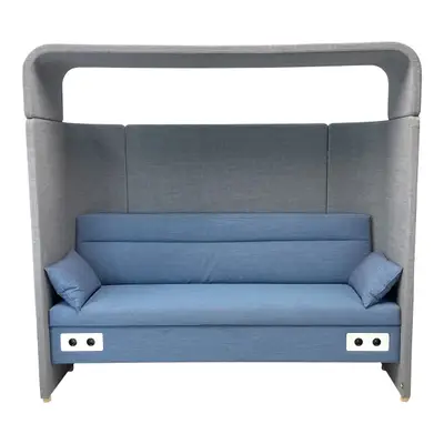 Surround möjliggör rum-i-rum-lösningar som både avskärmar och dämpar ljudnivån i moderna, öppna kontorsmiljöer. Med EFGs Surround kan du skapa allt från avskilda arbetsplatser till privata eller informella mötesrum. Soffan har en stomme av massivträ och träfiberskiva, överklädd av kallskum och tyg i färgerna blå och grå. Även försedd med fyra stycken integrerade eluttag.
