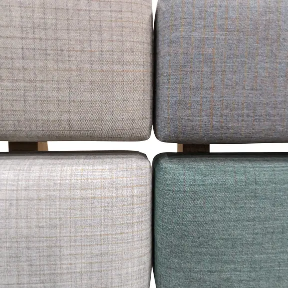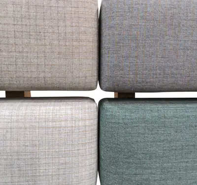 Soffan Kámon från Karl Andersson & Söner, klädd i flerfärgad tygklädsel med synliga trädetaljer och underrede i ek. Stoppningen är av kallskum. Då sittdynorna har en distans mellan sig är det lätt att hålla dem rena från smulor eftersom de faller ned på golvet och om en skada uppstår i en av dynorna kan den enkelt monteras av och skickas för omklädsel. Kamón Lounge passar i personalutrymmen, väntrum, lunchrum, hotell- ,och personalmatsal, korridor, utställningshall, lobby entréer.