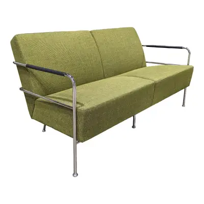 Soffan Cinema från Lammhults. Designad av Gunilla Allard. En klassisk och bekväm soffa med maximal hållbarhet. Stativ i krom, klädd i ett grönt/svart tyg.