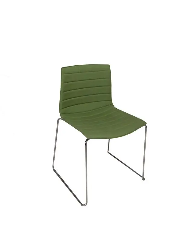 Den välkända designstolen Catifa från Arper. Stolen är klädd i ett grönt tyg med kromat underrede. Stolen är staplingsbar.