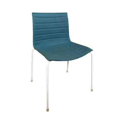 Den välkända designstolen Catifa från Arper. Stolen är klädd i ett turkos tyg med vitt underrede. Stolen är staplingsbar. Sitthöjd: 46cm.