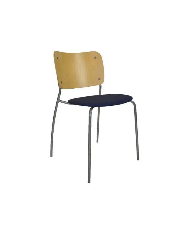 Stapelbar stol från EFG som är liten och nätt och fungerar utmärkt i alla miljöer. Stolen har en mörkblå sittdyna och ben i grått aluminium.