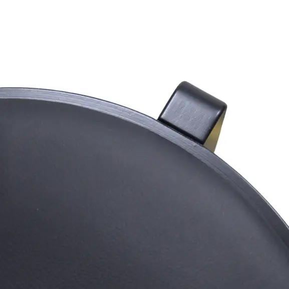 Formpressad skålad fanér-sits klädd i läder, med ljudabsorberande material under.