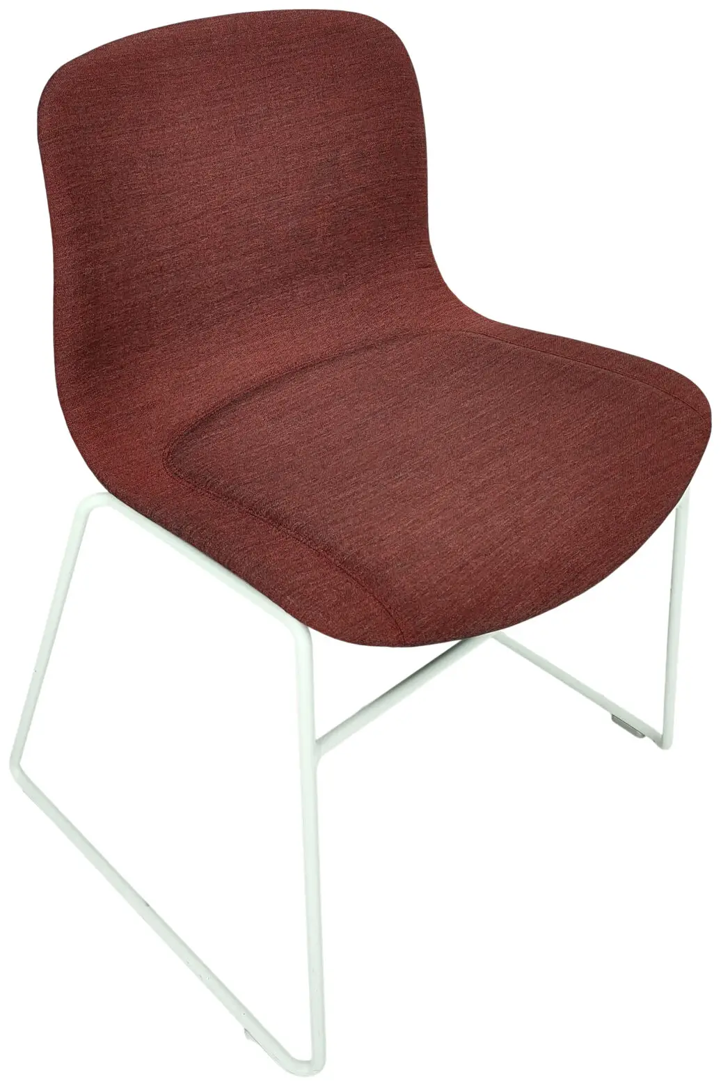 About A Chair 09 från danska HAY. Helklädd i ett snyggt, rött tyg och med vita, pulverlackade medar. Stapelbar. Sitthöjd: 47cm.