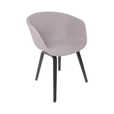 About a Chair 22 från Hay. Tanken med serien About a Chair var att skapa en stol med väldigt enkel design och kombinera form, funktion, detalj och estetik. Stolen från serien About a Chair fungerar lika bra i konferensrummet som runt matsalsbordet. Stolen är omtapetserad med ett grått tyg och svarta ben i trä.