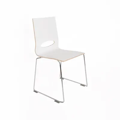 En snygg och stapelbar universalstol från Isku i vit färg. Kromat underrede. Sitthöjd: 46cm.