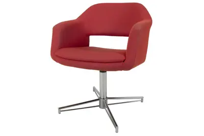 Snurrfåtöljen Largo från Johanson Design helklädd i en röd färg. Mjuka sköna linjer och hög sittkomfort. Design av Börje Johanson och Robert Tillberg. Sitthöjd: 46cm.