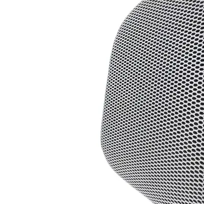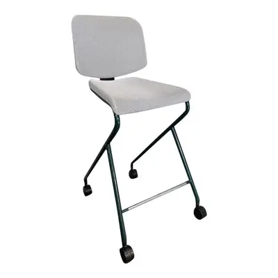 Konferensstol i serien Add Move från Lammhults. Rygg och sits helklätt i ett tyg i vitt nät med svart i botten och underrede av grönt stålrör. Sitthöjd: 65cm.