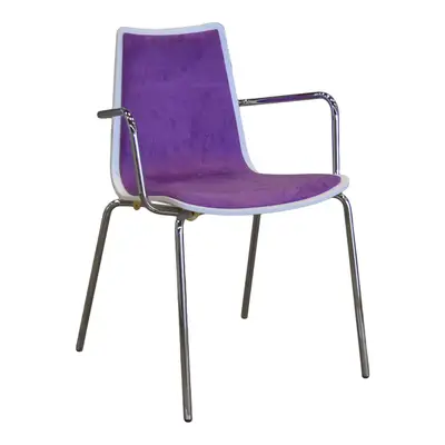 Stol med vit sits och rygg, klädd i lila klädsel.