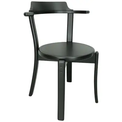 Fin, nylackad trästol från Miljöexpo i svart utförande (NCS:S9000-N).