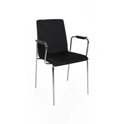 MOON-besöksstolar från Narbutas är ett perfekt val för konferens och mötesrum. Helklädd i ett svart tyg och med kromat underrede. Sitthöjd: 46cm.
