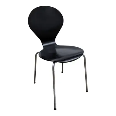 Svart snygg stol med kromade ben. Sitthöjd 46 cm.