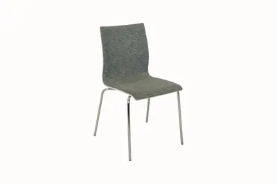 Sitthöjd:45cm Stapelbar, vit stol med grönt tyg och kromade ben.