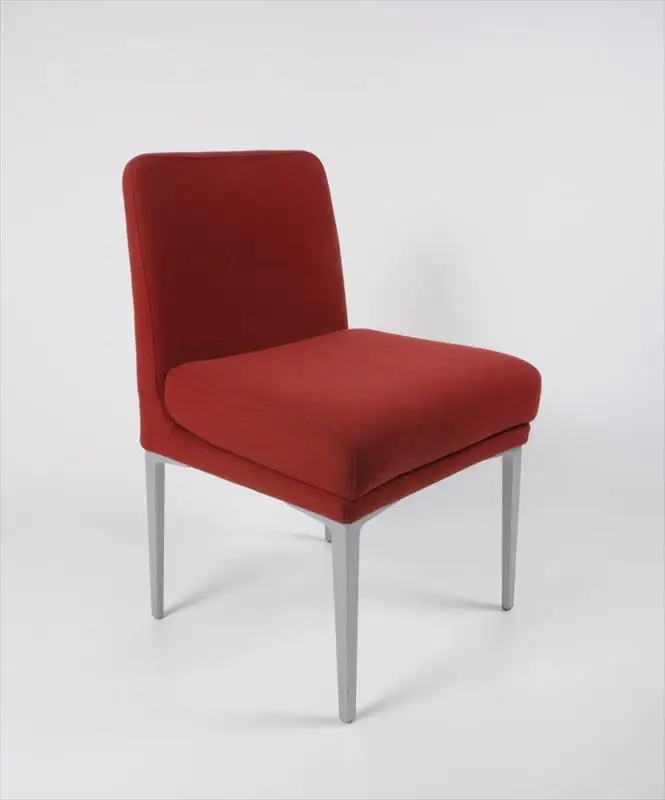 Den otroligt bekväma stolen Alpha från Segis i röd klädsel med grå ben.