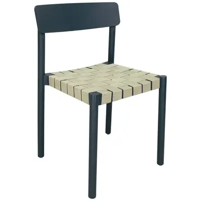 Stolen Betty från &Tradition, som är namngiven efter Betty Nansens teater i Köpenhamn, är en snygg, djupt mörkblå trästol med flätad, naturfärgad sits i lin. Stolen är stapelbar upp till 8st. Sitthöjd: 46cm.