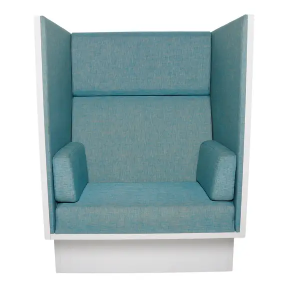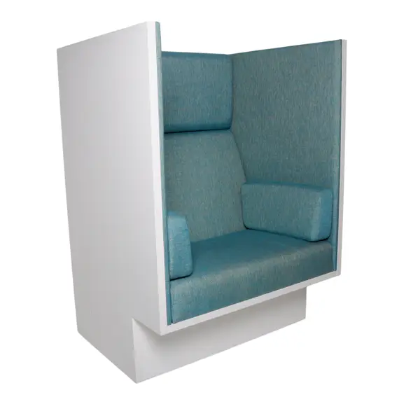 En telefonfåtölj från Horreds som har bra egenskaper av ljuddämpning och ett mysigt krypin. Sidokuddar som armstöd ger en avslappnad sittning. Design: Fredrik Mattsson. Sitthöjd: 45cm.