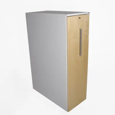 Snygg towerförvaring från Kinnarps. Förvaringens stomme är i vitt och dörren i björk. Förvaringen har ett lås och är avsedd att placeras till höger om skrivbordet. 3XA4.