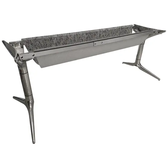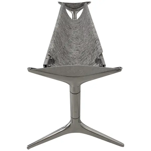 EFG Hidetech underrede i polerad aluminium. Benen är ihåliga och filtdetaljer döljer tekniken.