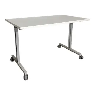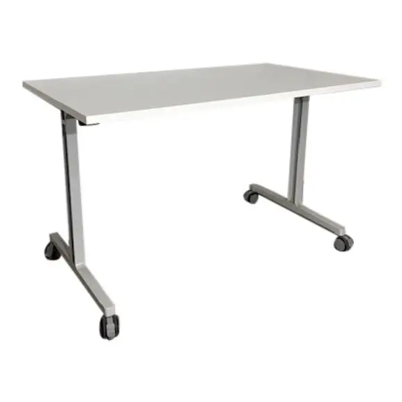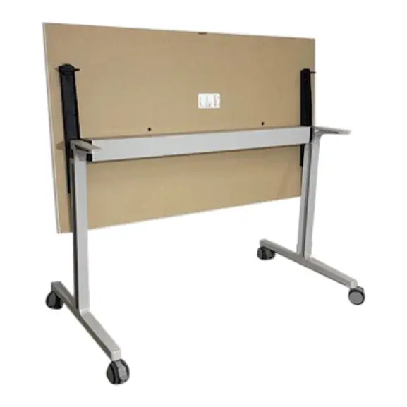 RBM U-Connect är ett smart fällbord med hjul som kan ställas ihop i vertikal position. Bordsskivan är fäst i en konsol i upprätt position och kan tippas längst med sin långsida.