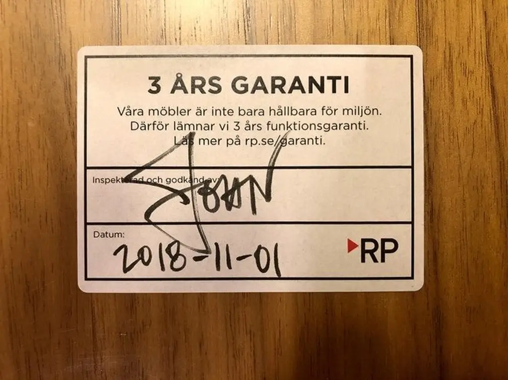 Nu är det dags för oss att erbjuda alla våra kunder tryggheten av en generös garanti. Från och med november 2018 levererar vi all återanvänd kontorsinredning med tre års garanti. Hos oss får du dessutom byta ut möbeln mot en annan om du ångrar dig. Det spelar alltså ingen roll om möbeln som ny såldes med ett års garanti – när du handlar den återanvänd hos RP gäller alltid tre år.